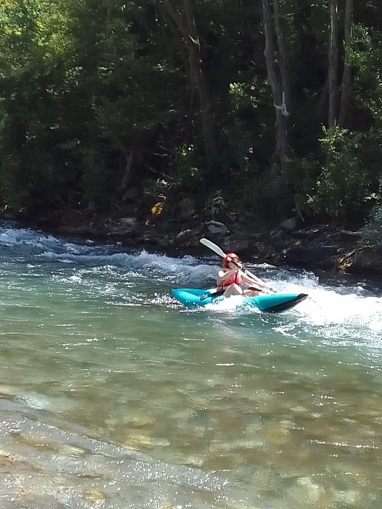 I’m not concerned about the sleeping arrangements or the lack of food—these trivialities don’t matter much when the clearest river and beautiful mountains are right outside. That afternoon, I’m wandering along the riverbank, watching Nikos send off a school trip on three large rafts. When he spots me, he offers to let me join them. Thrilled, I agree, but instead of putting me on one of the rafts, he points to a single kayak, tosses me a paddle, and gruffly asks if I’ve done it before. Lacking the courage to admit I haven’t, I nod confidently. Nikos shoves me off after the retreating rafts, and from that moment on, I’m in the hands of fate.