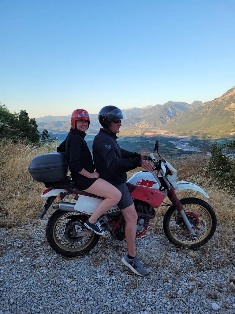 To this day, I don’t know how I made it through that stretch of rapids, rocks, and fallen trees. People from the rafts tried to guide me, but it was no use—I just let myself drift with the water, which, apparently, is the exact wrong thing to do. Nikos eventually pulled me out at the designated spot like a drowned cat, but the experience somehow confirmed our unequal friendship. For the rest of my stay, Nikos affectionately calls me „Tséka“, takes me out for sunset motorcycle rides in the mountains, and pours ouzo in the evenings while trying to pull me into Greek conversations with the other campers. When I leave after a week, he half-jokingly warns me not to come back until I can speak Greek fluently.